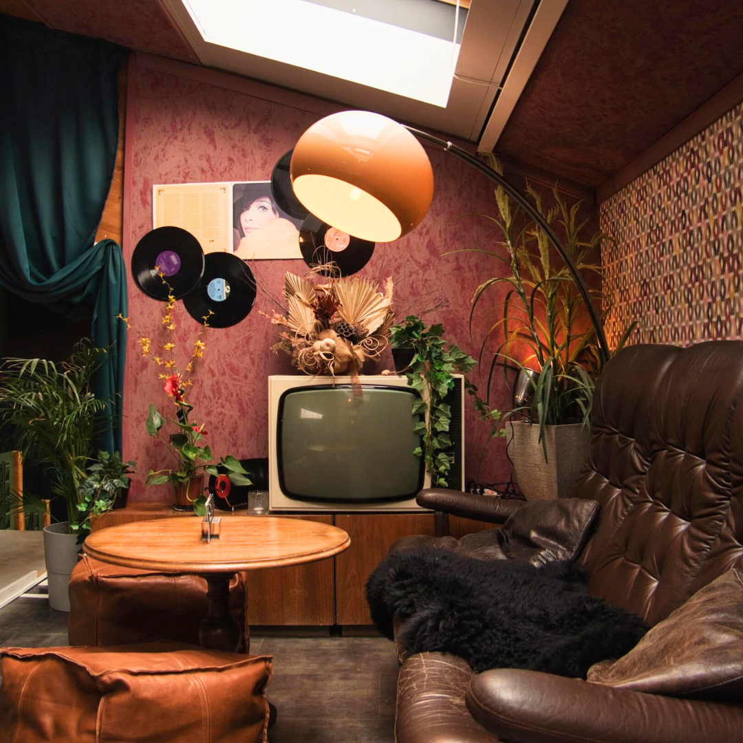Benvenuto nel nostro accogliente salotto italiano, dove l'arredamento ti immergerà nello stile elegante degli anni ’’70. Confortevoli 6 posti a sedere e un divanetto accogliente, perfetto per un aperitivo informale per 4/5 persone, questo spazio èl'ideale per rilassarti prima di una cena o per condividere piacevoli momenti con gliamici.