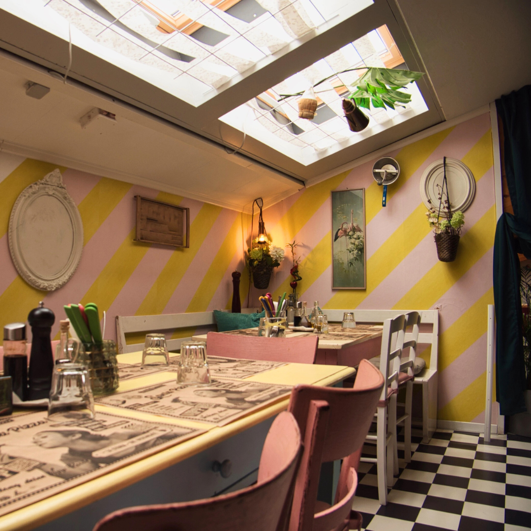 Trasportati nel cuore di un tipico garage italiano degli anni '70 mentre ti godi i nostri piatti deliziosi. Con un ambiente che evoca l'autenticità e il fascino di quegli anni, e 8 posti a sedere disponibili, questa zona è l'ideale per un pasto informale con un tocco di nostalgia. Inoltre, godrai di una vista panoramica su tutto il ristorante, permettendoti di immergerti completamente nell'atmosfera vibrante e accogliente che ci contraddistingue. Lasciati avvolgere dall'atmosfera unica e dagli aromi invitanti mentre ti concedi un'esperienza culinaria indimenticabile in un ambiente rustico e accogliente.